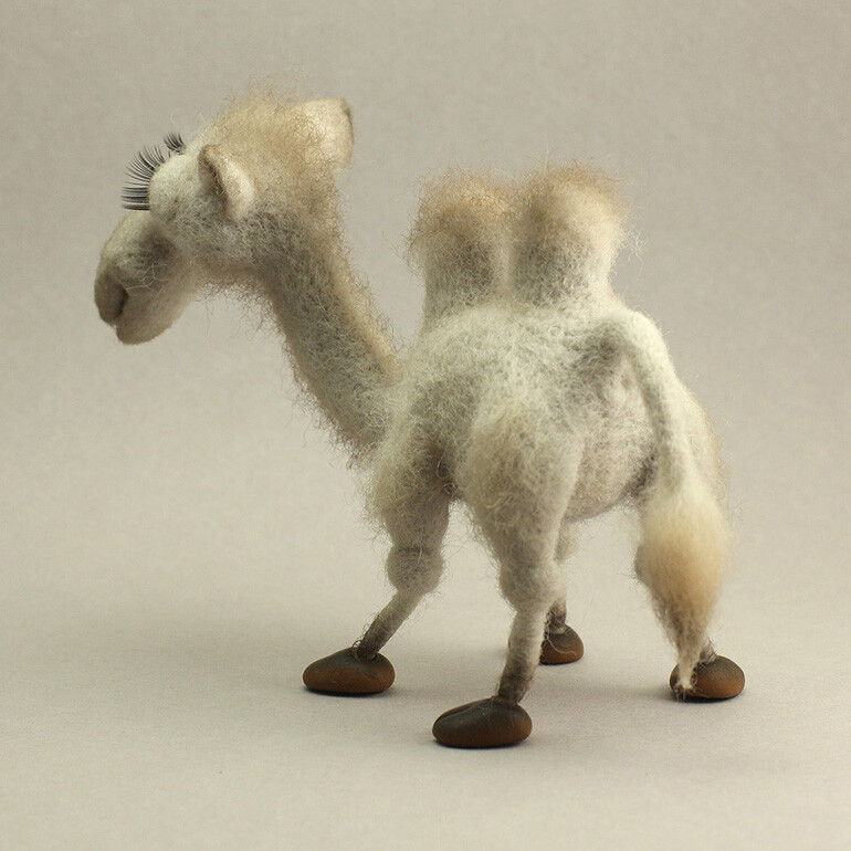 Всеми этими прекрасными качествами обладает маленькая очаровательная Верблюжка. Она всеобщая любимица, мягкая, пушистая красавица. Делать ее из шерсти легко и приятно, справится любой, кто даже не держал в руках иглу. В этой работе нет сложных приемов, но в то же время игрушка скульптурная и выразительная, изящная и эффектная.