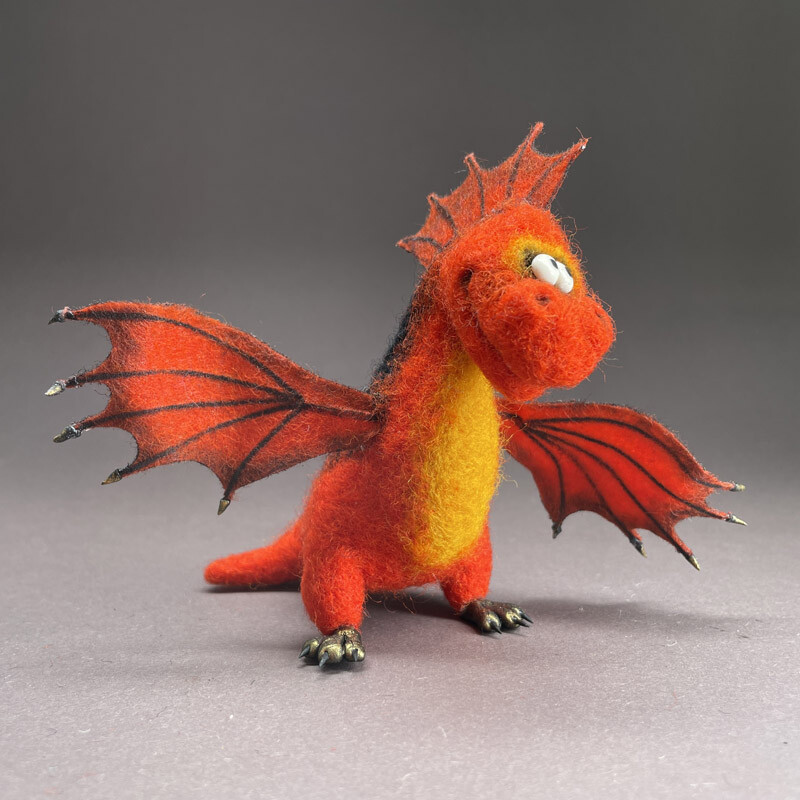 Дракон Китайский огненный шар отличается треугольной мордой, угловатыми и как будто прогоревшими насквозь крыльями и декором в виде трех продольных гребней на голове и шее.