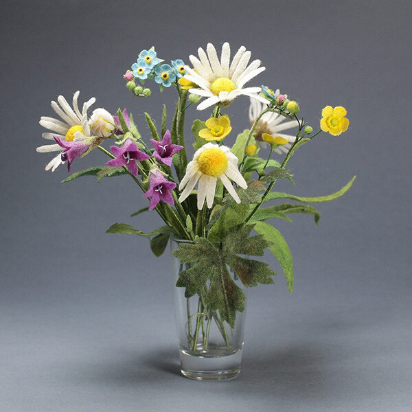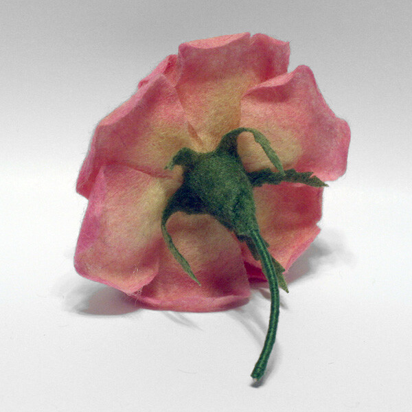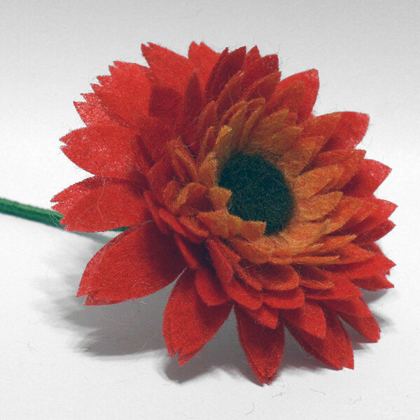Именно поэтому цветы из клееного фетра в виде брошей, украшений, заколок, букетов так хорошо совместимы с текстильными и шерстяными изделиями, будь то валяная одежда или игрушки.