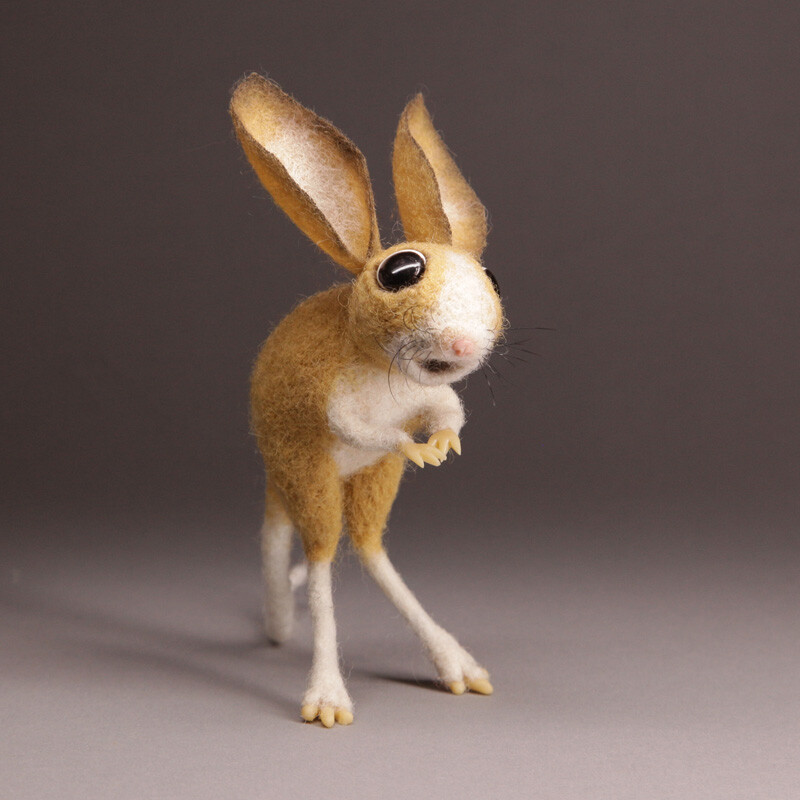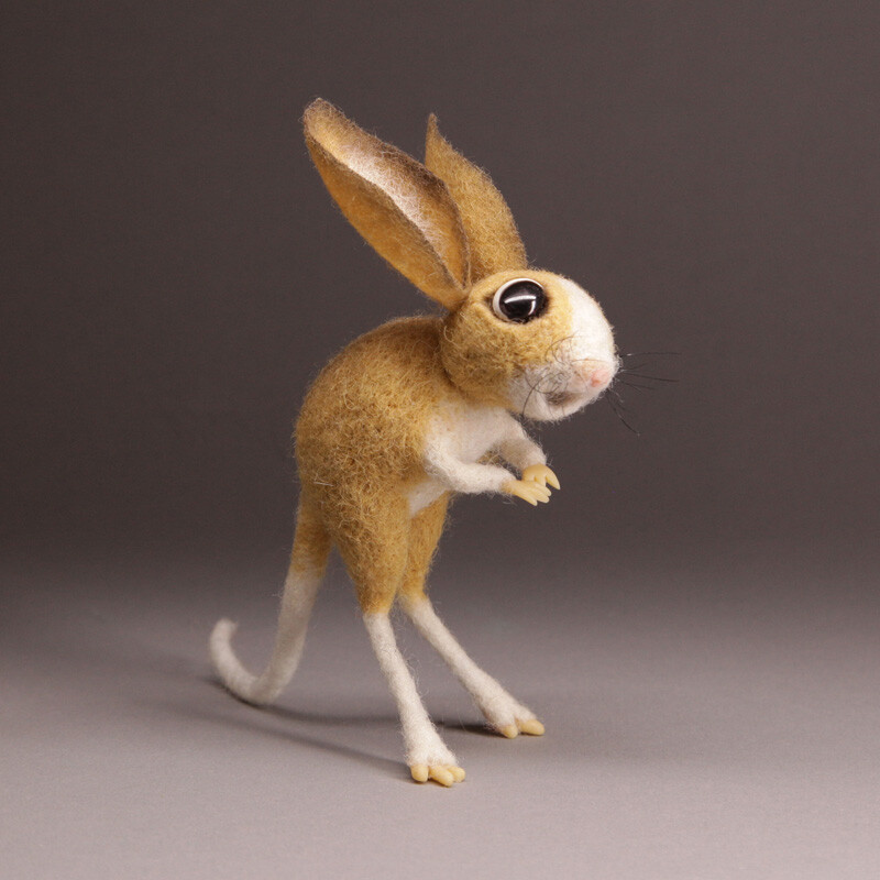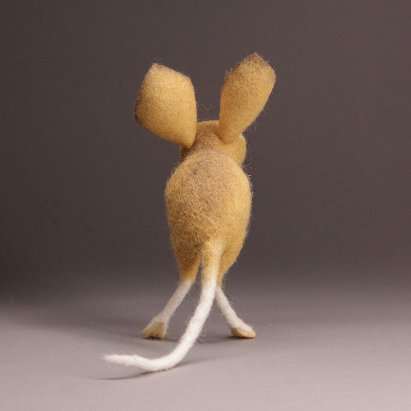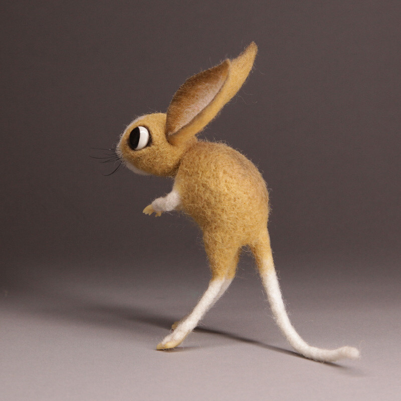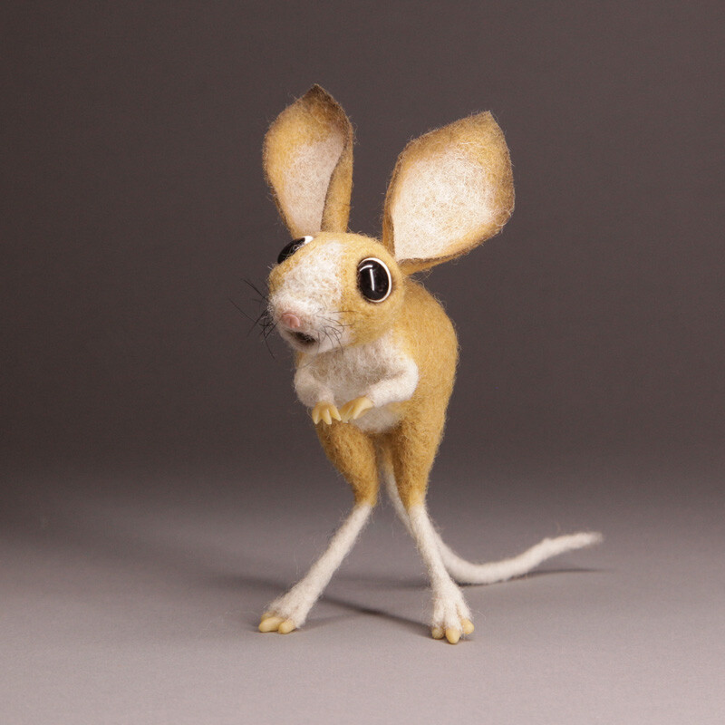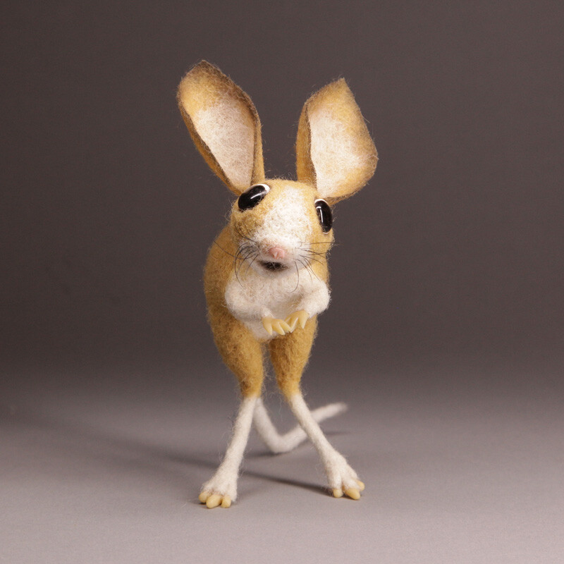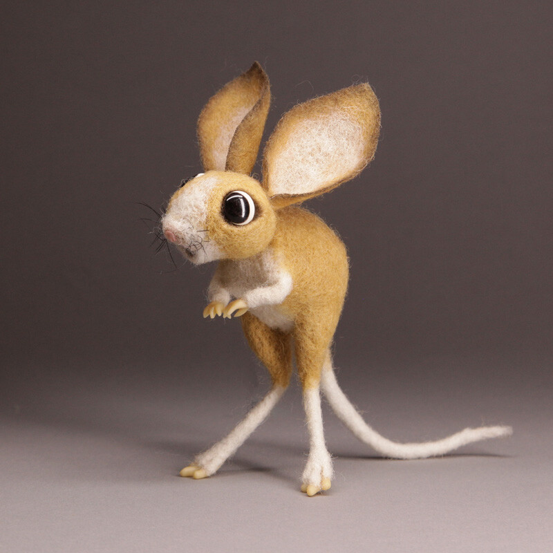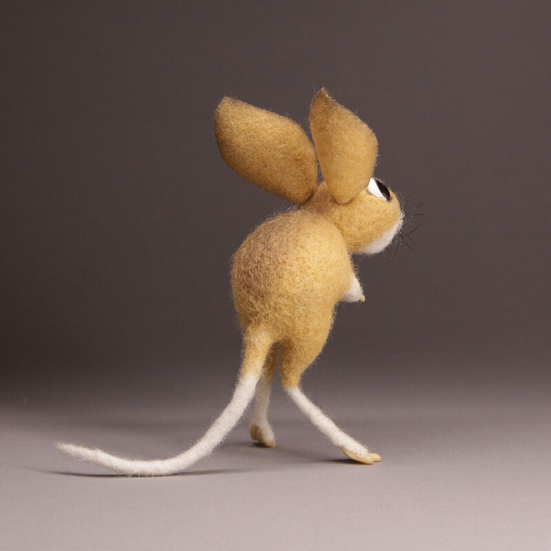 Тушканчики - необыкновенно милые зверьки, они сами похожи на игрушку. Поэтому я решила, что нет нужды что-то сильно менять и превращать Тушканчика в персонажа. Я сделала своего Тушканчика максимально реалистичным. У него крупные блестящие глаза, пушистые вибриссы на миниатюрной мордочке, прозрачные ушки и тонкие длинные ножки.